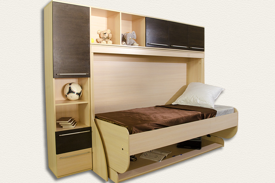 Многие покупатели предпочитают конструкцию шкафа-купе, в которую встроена кровать и несколько отделений для хранения вещей. В последнее время популярной новинкой стали трансформирующиеся кровати для школьников с пультом управления. Подростку пользоваться такой мебелью легко и комфортно, так как не приходится затрачивать дополнительных усилий при трансформации.