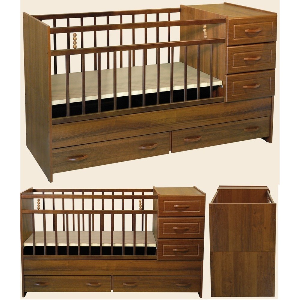 Детские кроватки с комодом и пеленальным столиком являются многофункциональными моделями. Эти изделия позволяют переодевать малыша, не уходя далеко от места для сна.