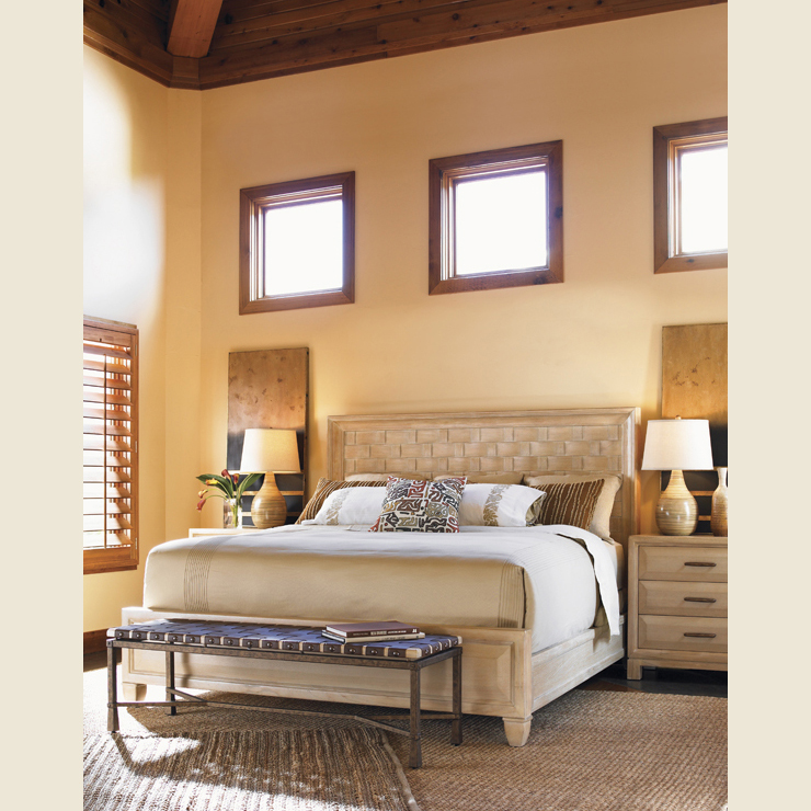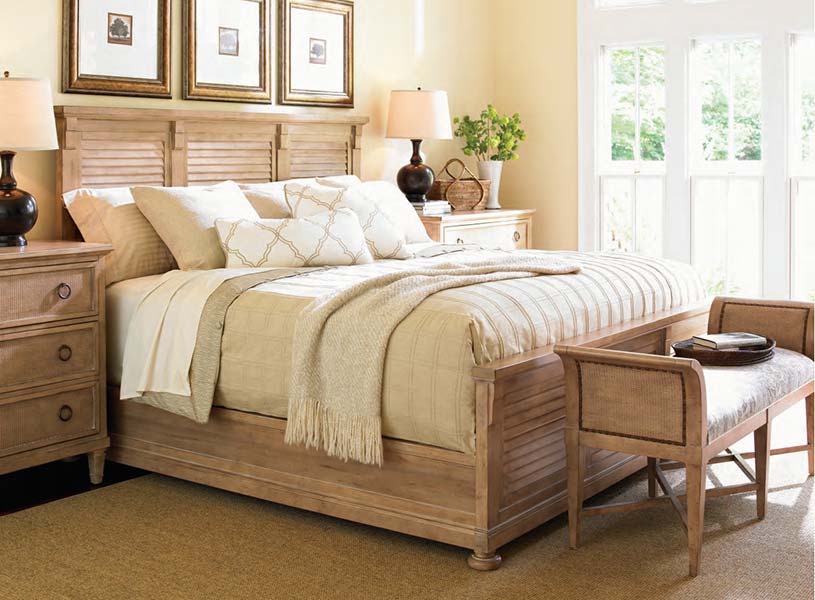 Древесина изголовья имеет натуральный оттенок или бывает окрашена светлыми цветами. Часто практикуется двухслойное окрашивание с созданием искусственных потертостей или благородное старение с помощью патин.