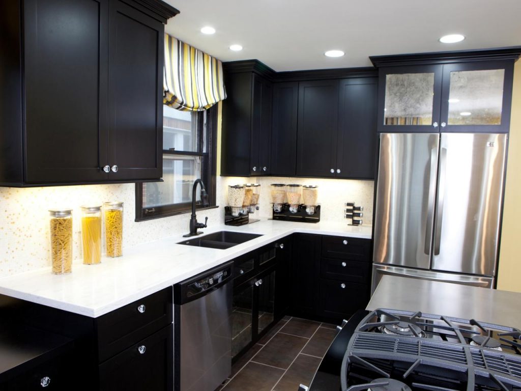 Если вы хотите, чтобы на вашей кухне были яркие основные цвета, может возникнуть искушение использовать белый в качестве основы. В то время как белый цвет идеально подходит для ваших стен в этом случае, черные шкафы обеспечивают больший контраст, чтобы сделать ваши цвета яркими.