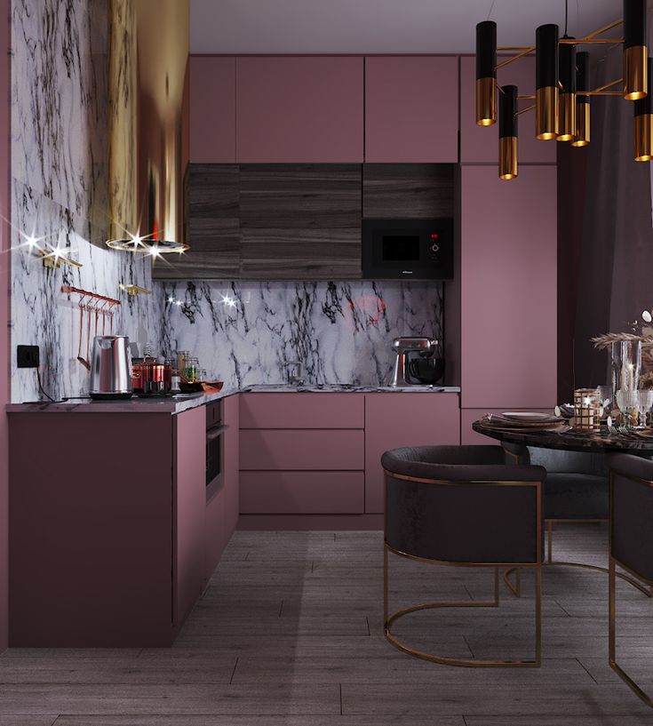 Розовые цвета тысячелетия последних нескольких лет уходят в прошлое — ожидайте, что они будут заменены более эффектными тонами того же цветового семейства, которые создадут более яркую комнату. «Пастельные розовые кухни насытили Instagram в 2022 году, но в будущем появятся более взрослые цветовые блоки», — говорит Слоан.