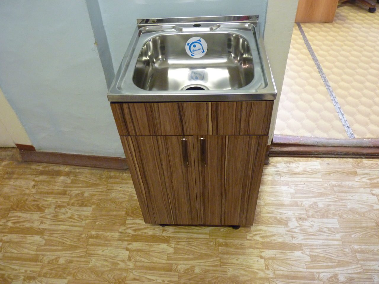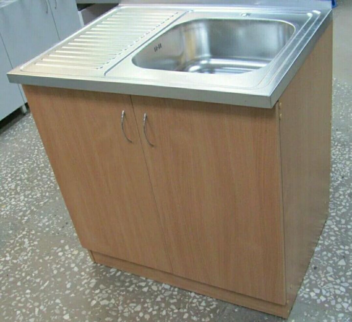 Для небольшой кухни лучше всего подойдёт компактная тумба с широкой мойкой без дополнительных крыльев для посуды. Маленькие тумбы имеют одну дверку и позволяют легко решить проблему нехватки места в области рабочей зоны.