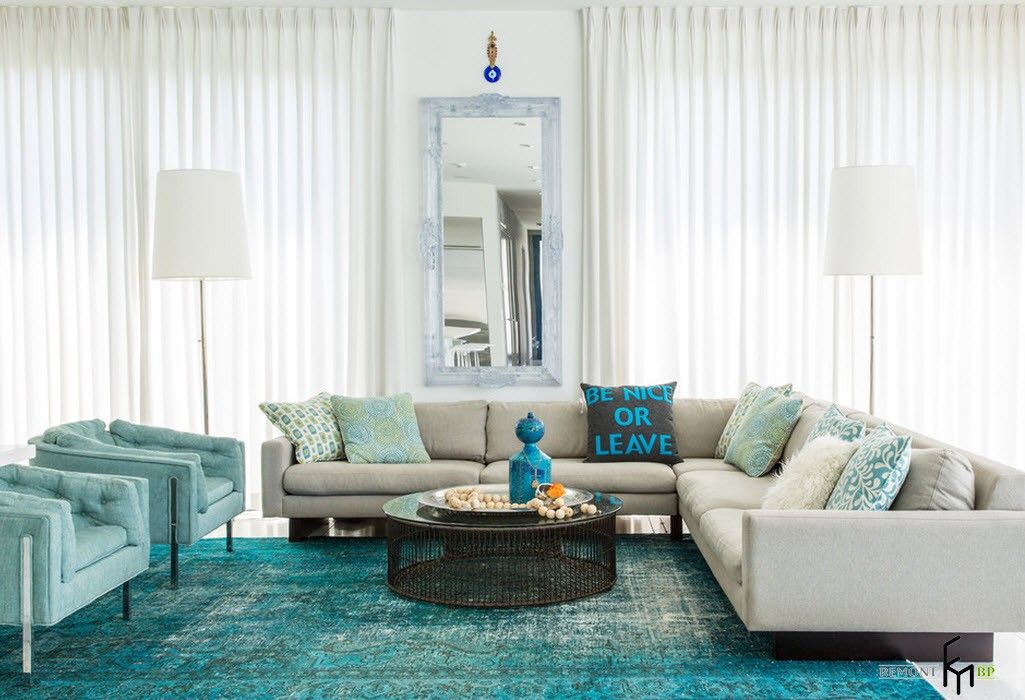 Такая гостиная придется по вкусу не только домочадцам, но и заглянувшим в гости друзьям, знакомым и родственникам. К тому же можно быть уверенным, что в мятной гостиной не будут вспыхивать внезапные споры, а беседа будет протекать исключительно в спокойном русле.
