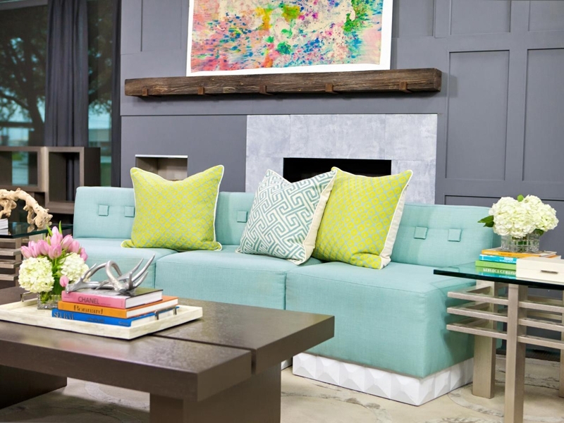 Если вы не хотите полностью оформлять гостиную в мятно-зеленом цвете, используйте его в качестве акцентного цвета. Он может хорошо работать вместо других нейтральных цветов.