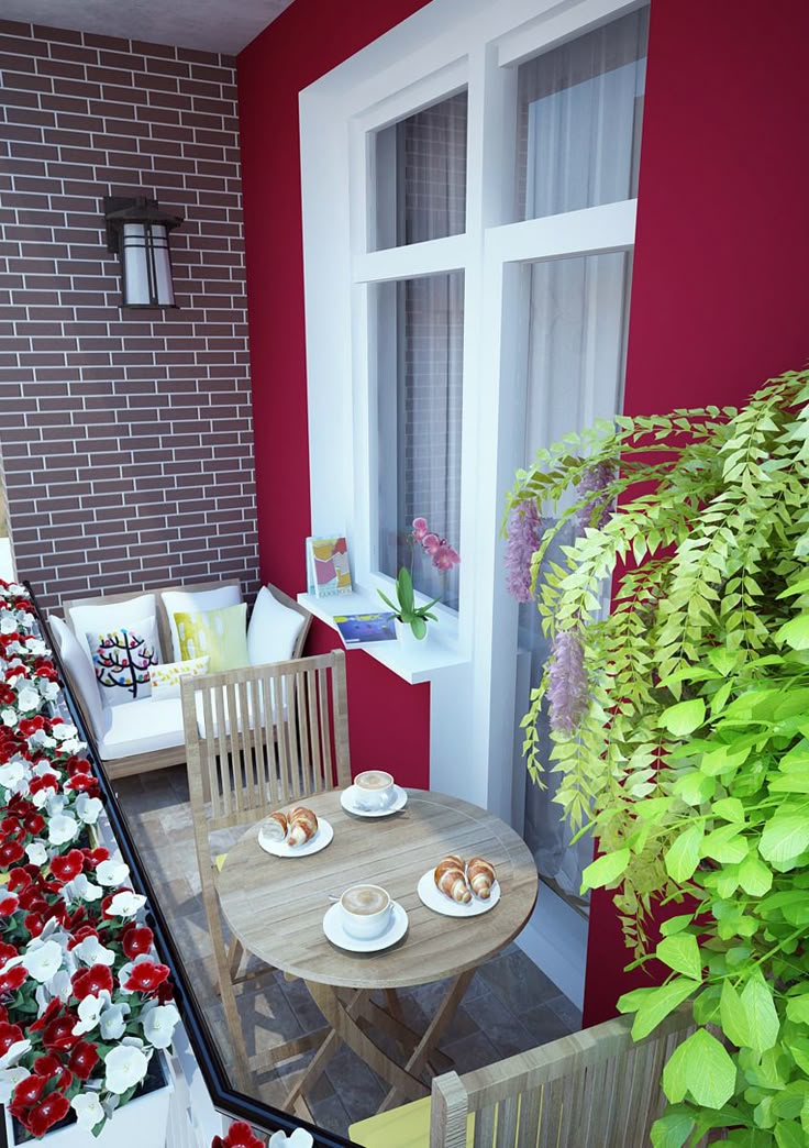 Крошечные балконы хорошо подходят для организации небольшого уголка для завтрака.