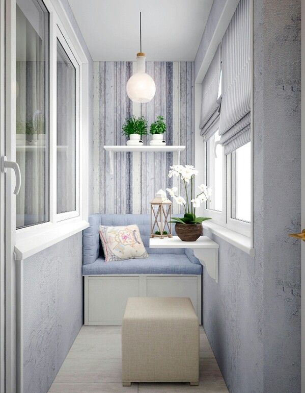 У маленьких балконов дизайн начинается с выбора цвета. Известно, что светлая окраска стен зрительно делает помещение больше. Выкрасив их в такой цвет, создается впечатление, что стены как бы раздвигаются в разные стороны.