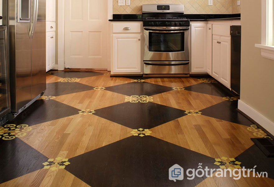 Многие вместо покраски предпочитают обклеить пол обоями, а после в несколько слоев покрывают его лаком. Подобное решение также имеет свои достоинства и недостатки, но поможет сохранить листы от влаги и сырости. Кроме того, сегодня в магазинах можно найти обои самых разнообразных цветов и рисунков, что открывает простор для дизайнерской фантазии.
