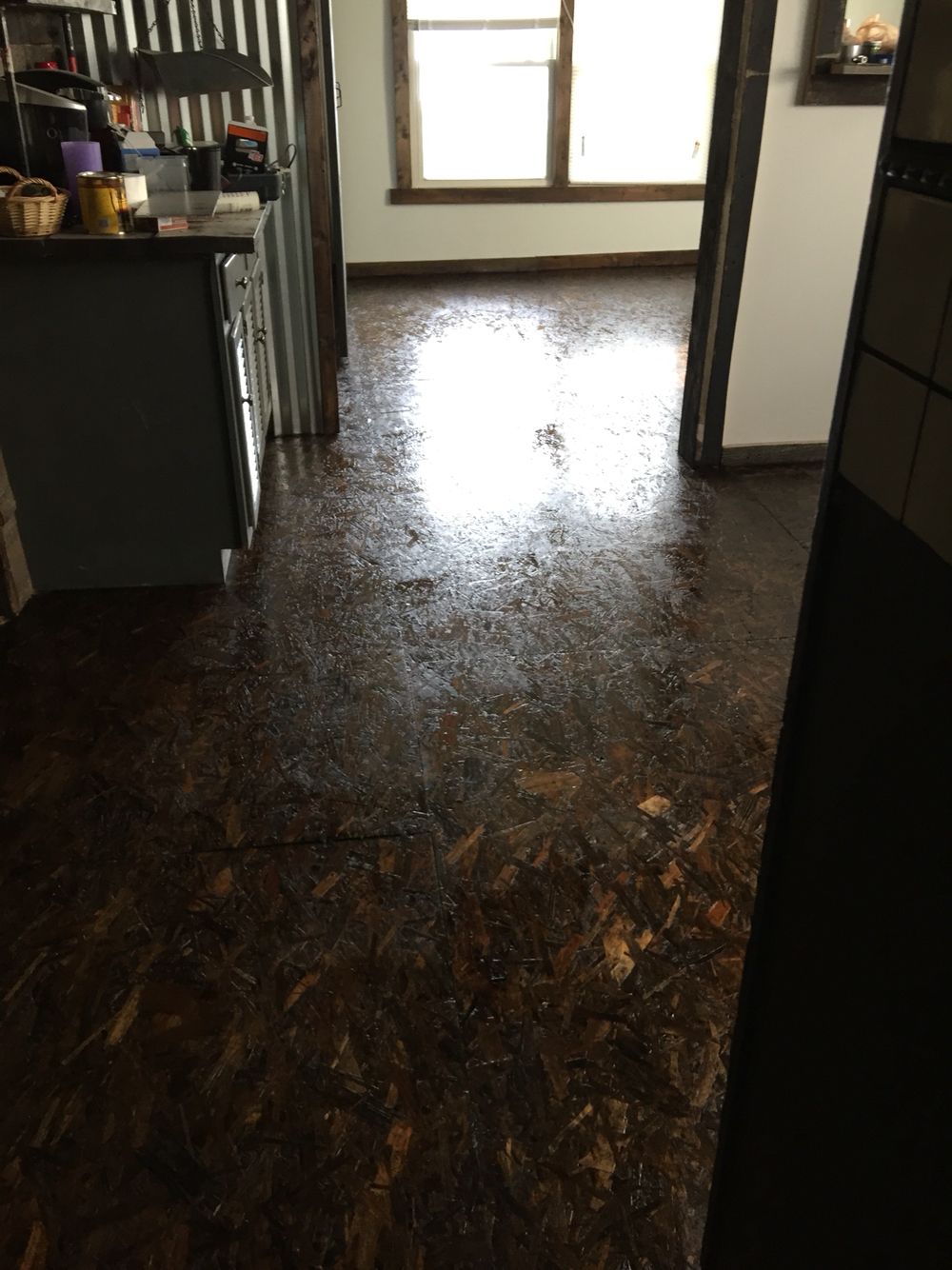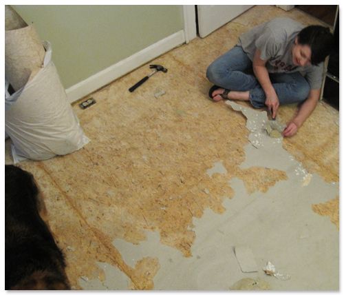 Во-первых, убедитесь, что фанерный пол надежно прикреплен к нижним балкам.Затем заполните все отверстия от гвоздей и швы на поверхности заплаточным составом. На этом этапе будет разумно убедиться, что в помещении, в котором вы работаете, есть соответствующая вентиляция (другими словами, установите вентилятор в окне).
