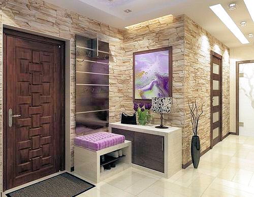 Фото красивого искусственного камня в интерьере прихожей представлены ниже.