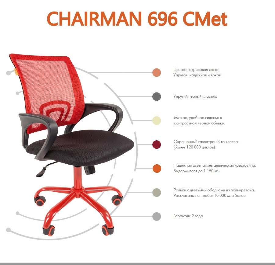 Также возможно отрегулировать наклон спинки. Кресло обшито обивочной тканью, которая не истирается. Однако со временем натяг ткани может ослабевать, что сказывается на удобстве эксплуатации изделия и его внешнем виде. Модель характеризуется эргономичностью, гармонично смотрится в офисных интерьерах, однако, имеет довольно жесткие колеса, которые могут царапать мягкие напольные покрытия (например, линолеум).