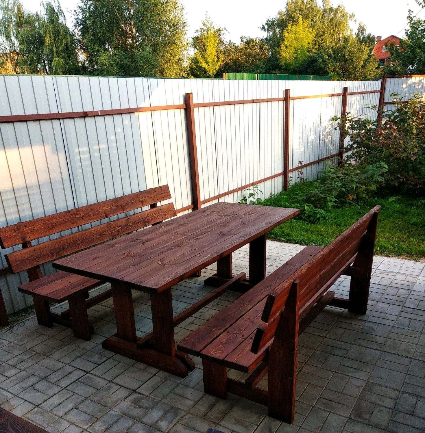 Вообще все деревянные элементы, которые находятся на улице, нужно обрабатывать. Стол и скамейки для беседки – не исключение. Тем самым вы продлеваете жизнь вашей самодельной мебели.