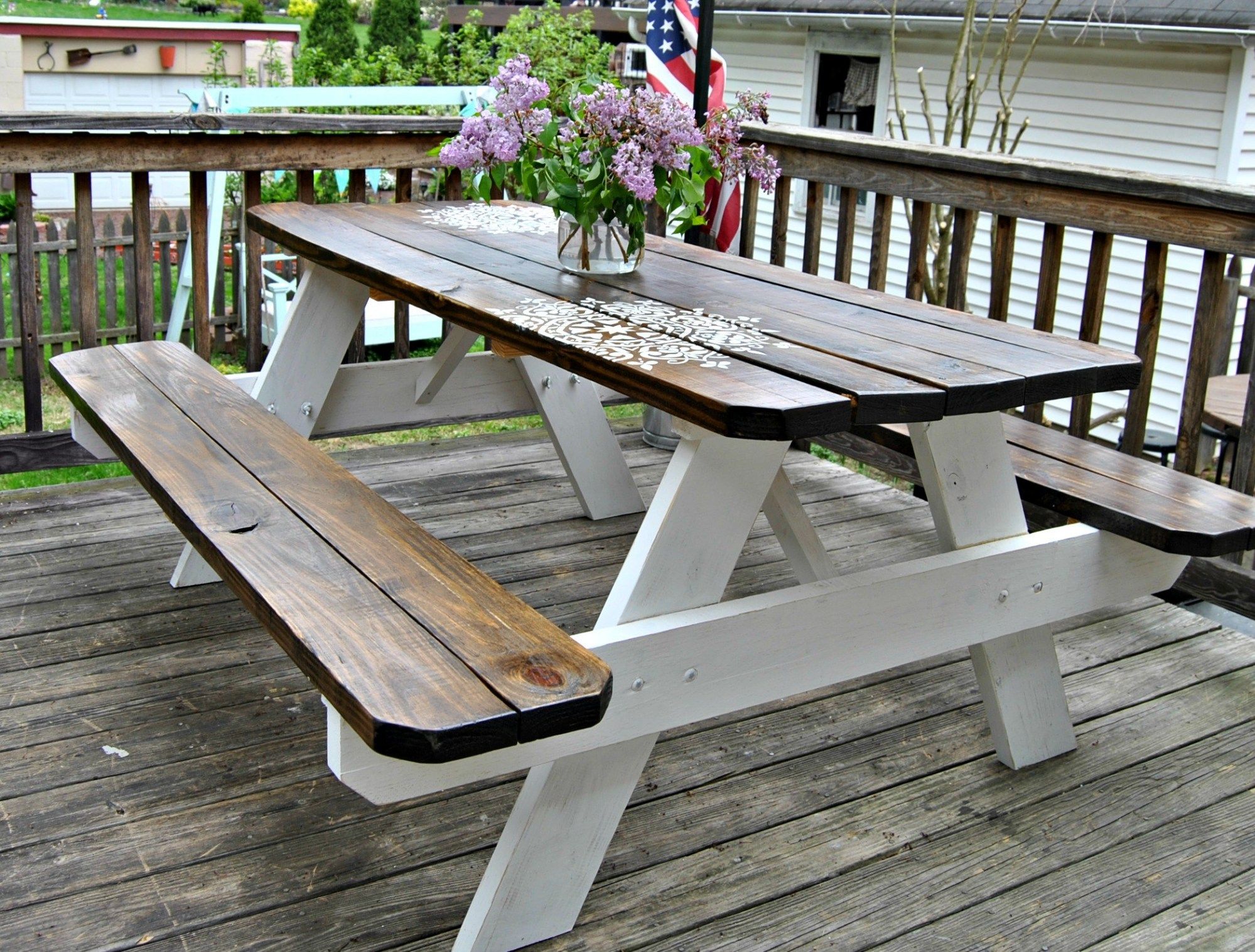 Деревянные скамейки имеют привлекательный вид, теплые и просты в сборке. Зачастую, в качестве крепежа используются саморезы, но встречаются также и болтовые соединения. Иногда, делают стол и скамейки в одной конструкции, которая скрепляется с помощью болтов.