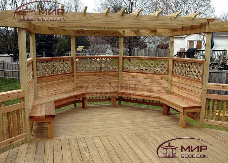 Вот палуба, к которой пристроена беседка.Вы можете комбинировать такие конструкции, чтобы сэкономить место и материалы. Беседка становится частью террасы и просто особенностью пространства.