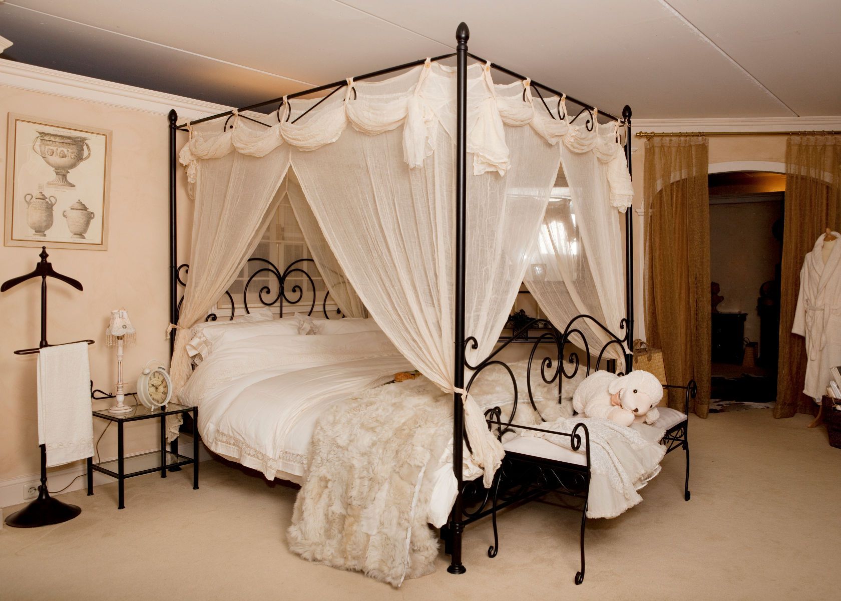 Классическая конструкция и каркасный балдахин требуют довольно много свободного места, что делает невозможным их использование в слишком компактных спальнях или домах с низкими потолками.