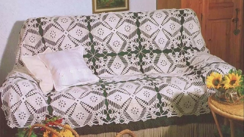 Отдельная категория – угловые диваны. Они, безусловно, замечательно экономят место в комнате, но вот связать на угловой диван покрывало крючком – задача нетривиальная.