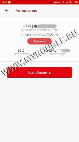 После блокировки ненужной опции на ваш телефон поступит сообщение об отключении автоплатежа.