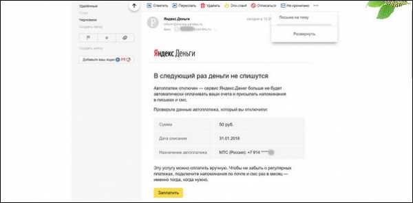 5 Через пару секунд на ваш почтовый ящик придет письмо о блокировке автоплатежа: