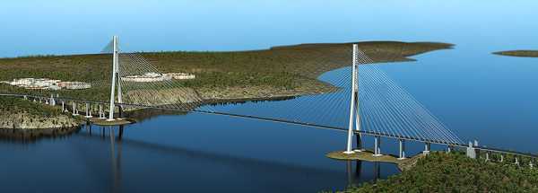 Это один из крупнейших вантовых мостов в мире, центральный пролет которого длиной 1104 м станет рекордным в мировой практике мостостроения. У этого моста самый высокий пилон, и самые длинные ванты.