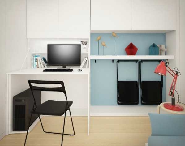 Не стоит сильно захламлять квартиру, количество предметов интерьера должно быть минимальным и оптимальнымВ маленьких помещениях иногда бывает сложно выделить отдельное спальное место. Именно поэтому кровать нужно складывать на день или организовать «спальню» под потолком. Складная кровать может убираться в один из шкафов, расположенных по периметру. При наличии достаточно высокого потолка в квартире отличным вариантом станет установка второго яруса для спального места.