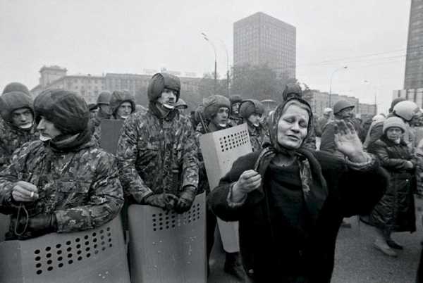 Смоленская площадь в Москве. Столкновения сторонников Верховного совета с милицией. 1993 год.