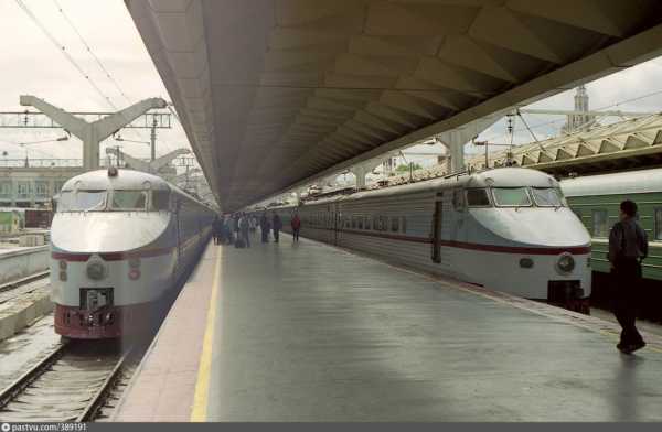 Поезда ЭР-200 на Ленинградском вокзале. Они добирались от Москвы до Питера за 4,5 часов. Эта модель поездов была разработана еще в конце 70-х годов, так что к 2000 году она была морально устаревшей.