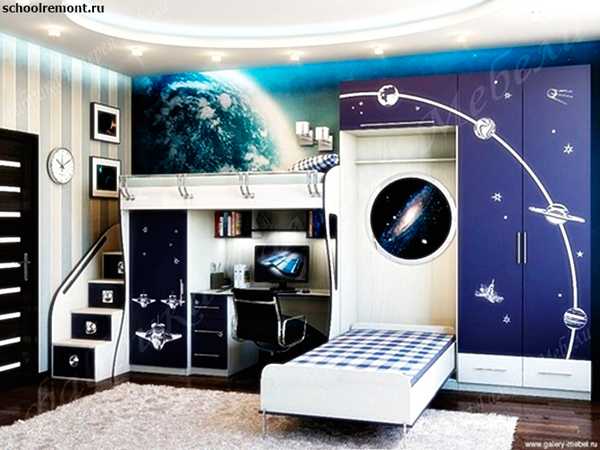Несмотря на то, что в комнате будут жить мальчишки, отделку желательно подбирать более спокойной