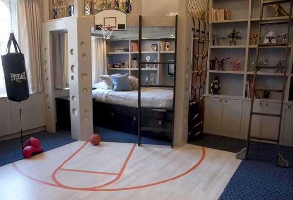 Оборудование игровой зоны зависит от площади комнаты и того, чем увлекаются дети. Это может быть шведская стенка, гимнастические кольца, боксерская груша, баскетбольное кольцо или место для шахмат. Главное, чтобы оно было отдалено от места для учебы и безопасно для ребят. Для игрушек желательно обзавестись отдельным ящиком, не смешивать их с учебными вещами на полках возле стола.