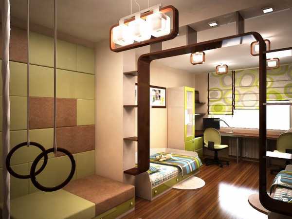 Место для игр. При оформлении данной зоны важно учитывать предпочтения обоих детей. Лучше всего предоставить право выбора данного решения детям: они сами подскажут вам, что станет для них идеальной игровой зоной: спортивная горка со снарядами, баскетбольное кольцо или гимнастический мат.