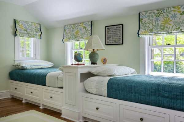 Маленькое пространство комнаты для двух подросших детей допускает исключительно модульную мебель и максимальное использование его по вертикали. Это двухъярусные кровати, диваны-трансформеры, шкафы-купе, навесные полки, мобильные тумбы на колесах, которые прячутся под столы. В стилевом направлении наиболее приемлемы минимализм или хай-тек. Визуально комната увеличивается только благодаря освещению да светлым оттенкам. Наполнение зеркалами для этого недопустимо. Они часто разбиваются во время активных игр и травмируют детей.