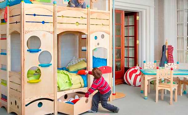 Отличным вариантом будет поставить в детской двухъярусную кровать