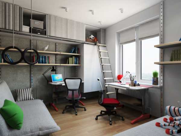 Оригинальное решение пространства в дизайне комнаты для двух мальчишек подросткового возраста