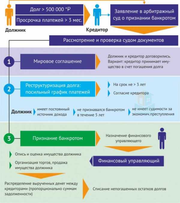 Кроме того, с 1 октября 2015 года вступили в действие поправки, позволяющие объявить человека банкротом. Для начала соответствующей процедуры необходимо, чтобы сумма долга в полмиллиона и выше не была уплачена в течение как минимум 3 месяцев. В этом случае если задолженность по кредиту превышает указанную сумму, человек может сам подать заявление в арбитражный суд о признании его банкротом. Тогда предоставляется рассрочка по уплате долга на срок до трех лет. Другое дело, что если за это время найти деньги на погашения кредита не удастся, очередь дойдет до продажи имущества. Помимо этого, человек, признанный банкротом, на время лишится части своих прав. Так, ему может быть отказано в выезде за границу, выдаче кредита или в открытии собственного дела.