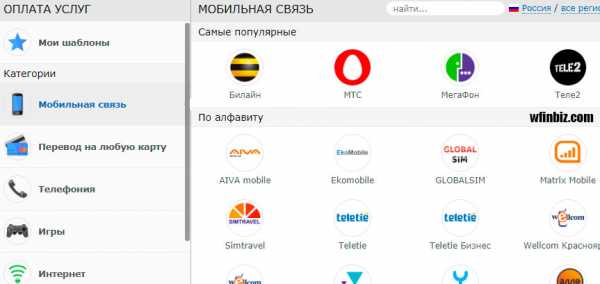Систем электронных денег известно много. Для того чтобы осуществлять оплату мобильной связи с их помощью необходимо вначале пройти регистрацию. Далее, если взять, к примеру, ВебМани, то переходим на вкладку «Оплата услуг», жмем «Мобильная связь», выбираем оператора и осуществляем трансфер.