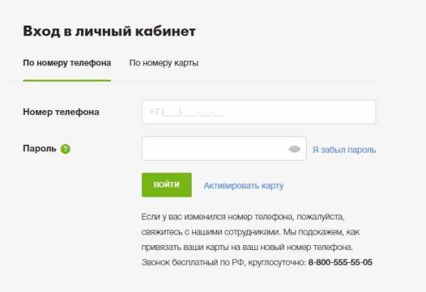 - Зайдите в него, используя номер карты или указанный при регистрации телефон.