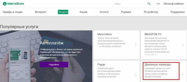 - На сайте Мегафона зайти в раздел «Денежные переводы»;