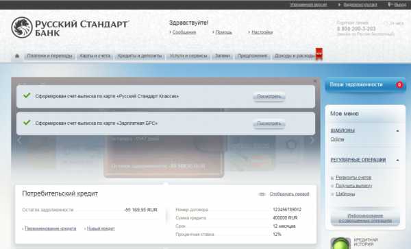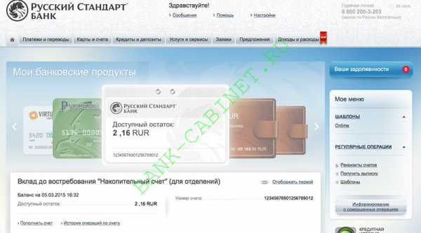 Использование личного кабинета от Русского стандарта пользователь получает возможность бесплатно и круглосуточно совершать различные банковские операции, достаточно лишь иметь доступ к Интернету: