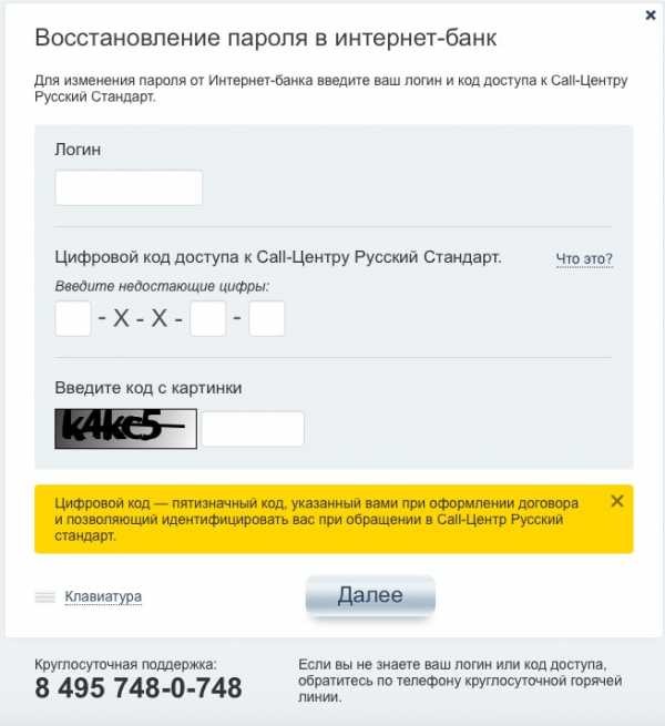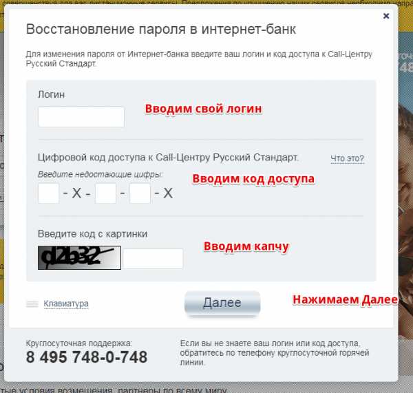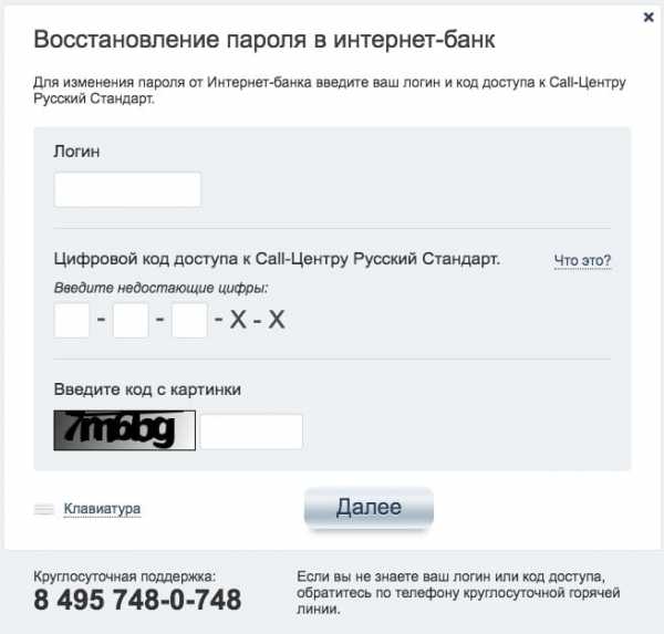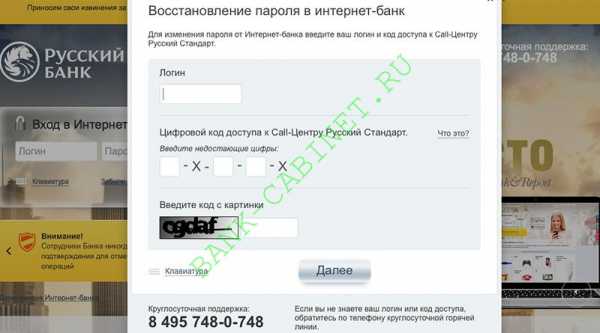 Восстановление пароля личного кабинета банка Русский Стандарт