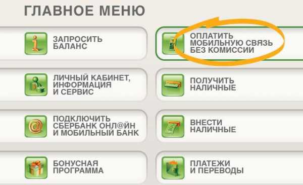 Меню для пополнения своего балансаПодключение и отключение услуги SMS-банкинг