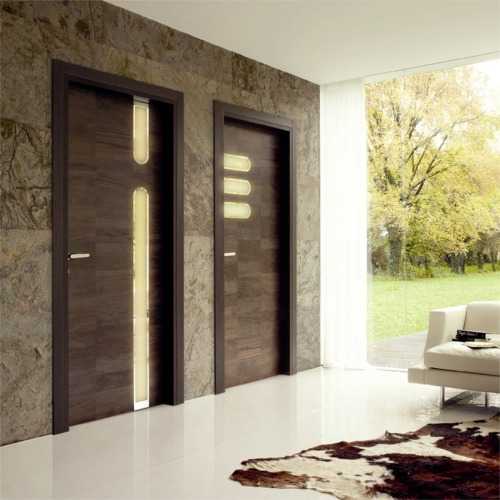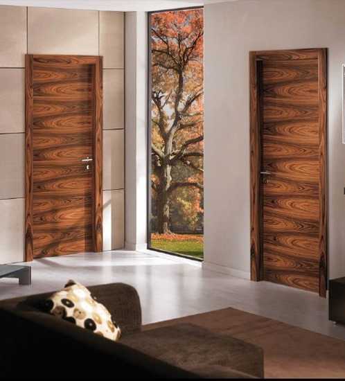 С первого взгляда трудно отличить шпонированные межкомнатные двери от сделанных из массива. Плюсом будет небольшой вес и богатство цветовых решений и фактур.