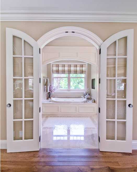 · Изогнутые плавные линии. Фрезеровка на двери в виде полукруга или арки — самый типичный элемент двери в классическом стиле.