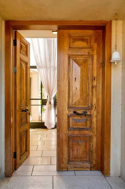 Для кантри подойдут грубые и массивные двери, оснащенные кованными петлями. Они легко добавят в интерьер гостеприимности, уюта и стиля.