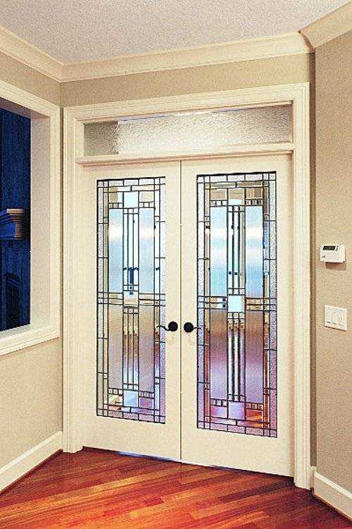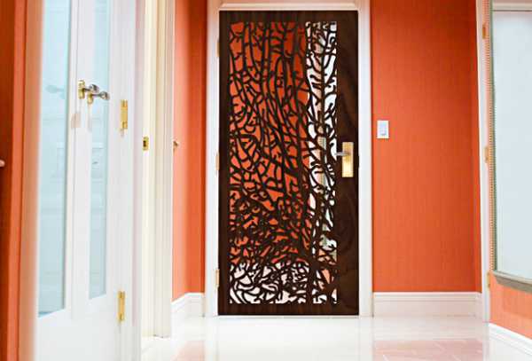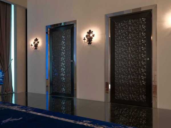 Декорированное дверное полотно позволяет внести в дизайн помещения нечто оригинальное и прекрасное. В качестве декора могут быть узоры, цветные вставки, зеркала, рисунки. Если заказать индивидуальное оформление по своему эскизу, то комната станет уникальной.