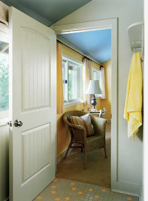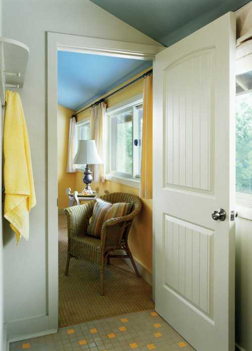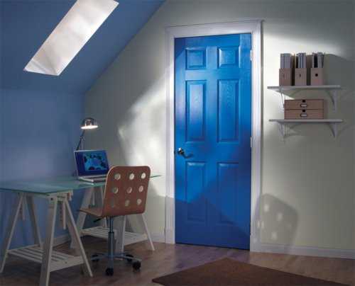 Подобные модели являются оптимальным выбором дверей под покраску, так как позволяют оформлять/декорировать стену с дверным проемом одним цветом. Это прием визуально способствует расширению пространства.