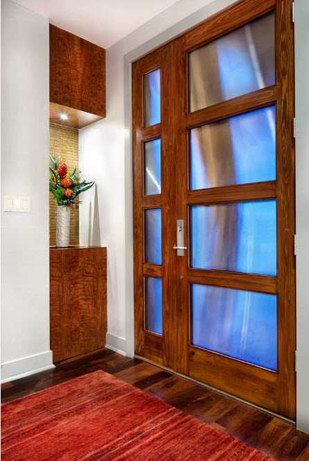 Стеклянные двери стали новинкой на отечественном рынке. Они чаще всего устанавливаются между комнатами. Входные стеклянные двери используются только в общественных или коммерческих учреждениях. Такие двери отличаются интересным свойством, которое дают большую свободу человеку, потому они полупрозрачны и дают ощущение большего пространства. Используются они пока не так часто, по причине высокой стоимости. Дизайн дверей межкомнатных фото: