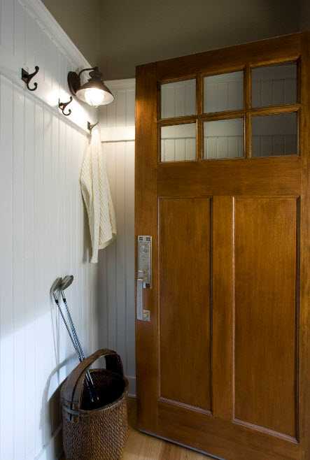 В этом направлении принято, чтобы дверное полотно было идеально ровным, лишенным любых декоративных деталей. Этот стиль призывает к максимальной простоте и природному совершенству. Оживить деревенский стиль можно при помощи кованных деталей – подков, колокольчиков и других изделий.