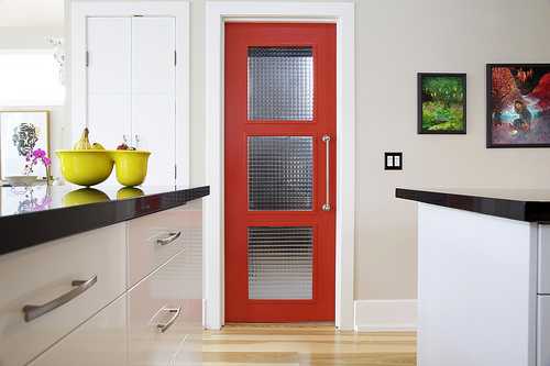 Если светлые стены и не менее нейтральные дверные полотна – это не ваш стиль, если вам необходим яркий, колоритный акцент в интерьере, то дверь в комнату вполне способна справиться с такой задачей. Яркая дверь может быть единственным акцентным элементом или поддерживать тон ключевого предмета интерьера, но в этом случае необходимо точно попасть в тон.