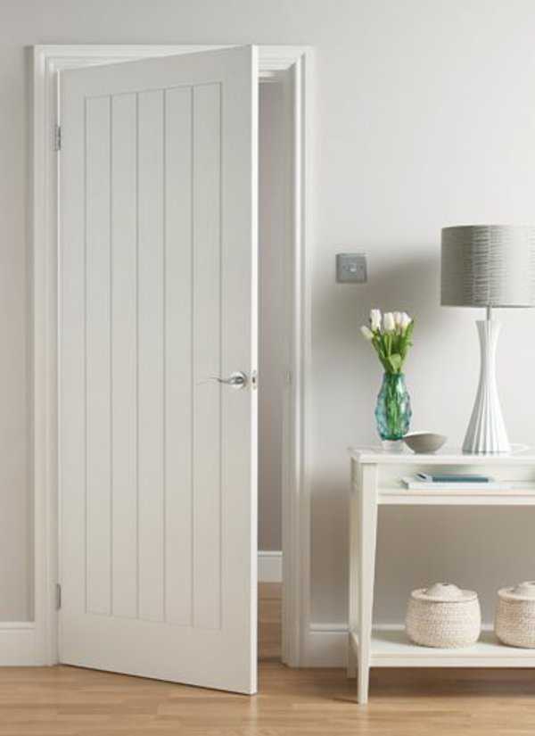 Белая эмаль отлично смотрится на межкомнатных дверных изделиях. Всегда можно купить эмаль другого цвета и сменить покраску