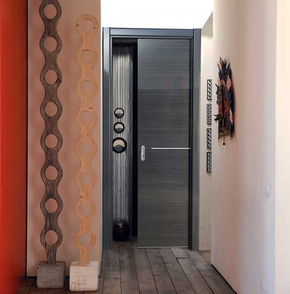 Самой модной можно считать потайную дверь, ведь именно эта модель избавит жильцов от мучительного выбора – к какому предмету интерьера подбирать дверь. До сих пор подобная конструкция не была популярна, так видимые петли и наличники сводили на нет стремления «спрятать» дверь. Теперь же конструкции комплектуются такими навесами, что полотно устанавливается заподлицо со стенами.