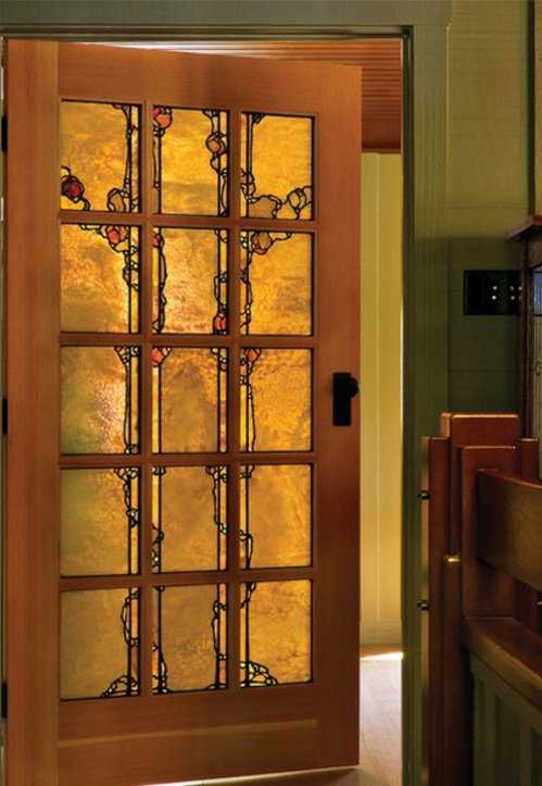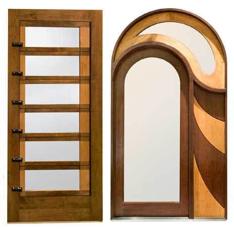 Двери для арт-деко производятся из светлых пород древесины, но есть масса моделей, изготовленных и из черного дерева. Часто такие изделия задекорированы орнаментами на тематику растений.