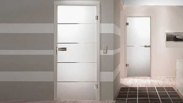 Все эти варианты дверей, выполненных из различных материалов, могут быть представлены как в глухом виде (филенка), так и со стеклянными вставками. К слову о стекле, как материале для исполнения дверных полотен. В современных дизайн-проектах все чаще можно встретить двери, выполненные исключительно из стекла, без рамок и профилей. Такие конструкции смотрятся легко и свежо, привносят в интерьер не только мотивы индустриальности, технологичности, но и возможность визуального расширения пространства. Двери из каленого, безопасного для человека стекла (даже если такое полотно разбивается, чего непросто добиться, человек не сможет пораниться осколками из-за защитной весьма прочной пленки) практически не препятствуют проникновению света, что позволяет сохранять иллюзию простора даже при изоляции помещений.